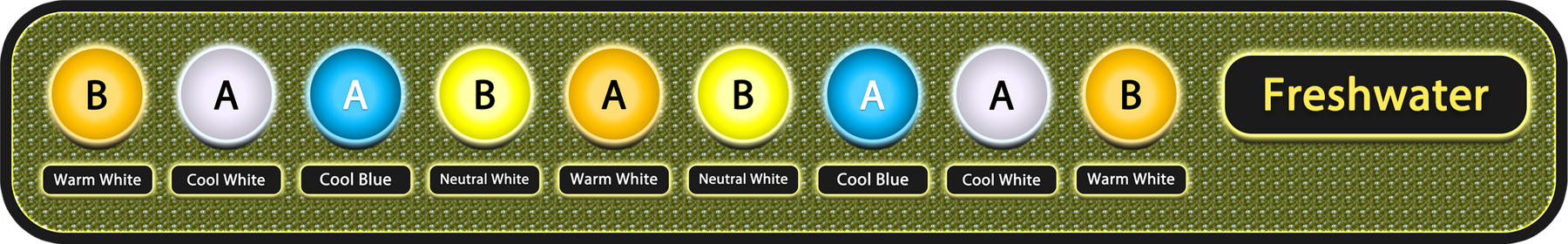 •    UV/Blue Hybrid: A mix of royal blue, near-UV, Violet, and Indigo to enhance coral coloration and stimulate growth.