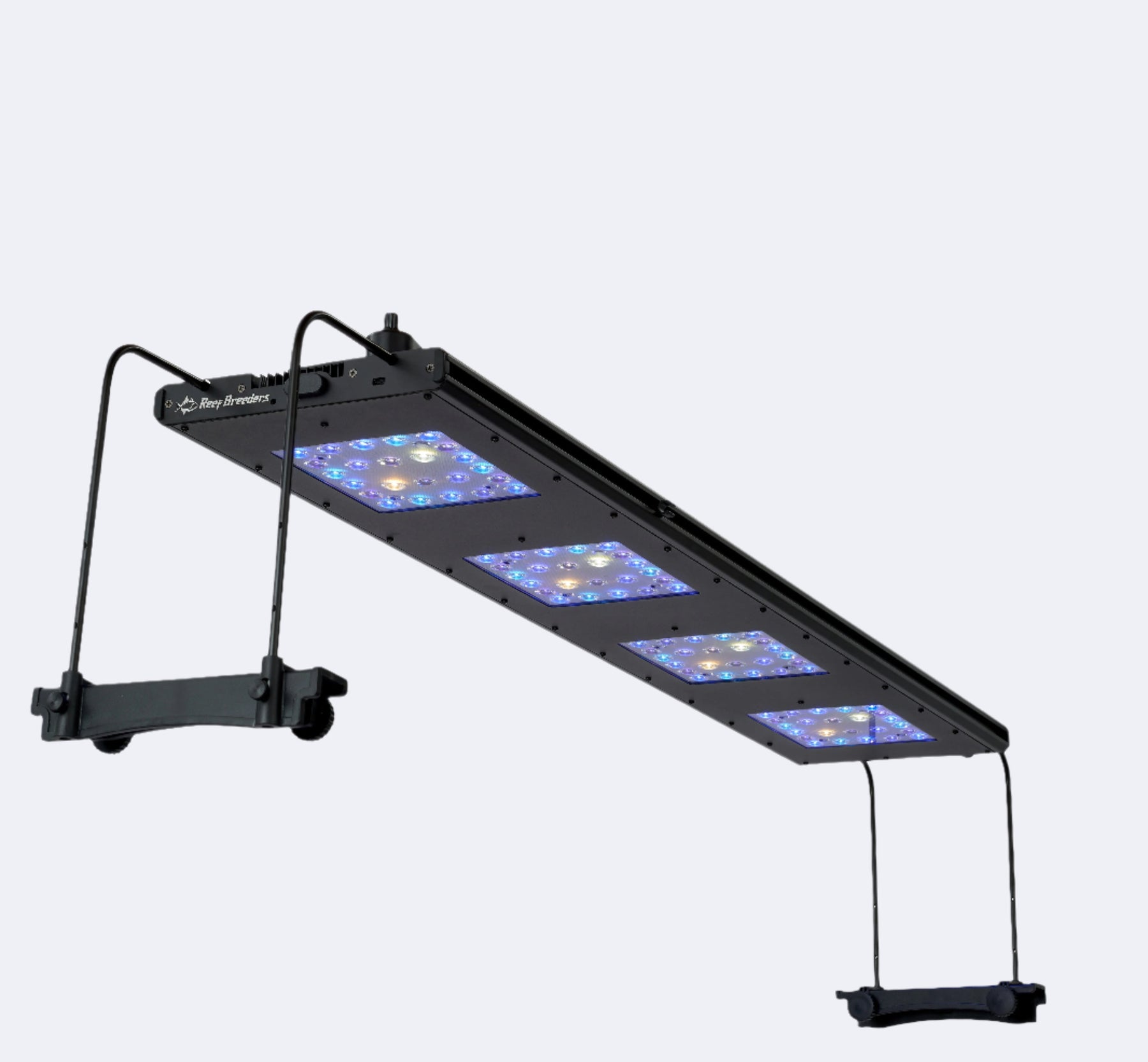Control is intuitive and adaptable. The ReefBreeders app provides cloud-based access via WiFi, Bluetooth enables direct local adjustments, and the optional Manual Controller offers intuitive on-device control. Users can control power, adjust spectrum settings, and program timed lighting cycles, including smooth sunrise and sunset transitions.