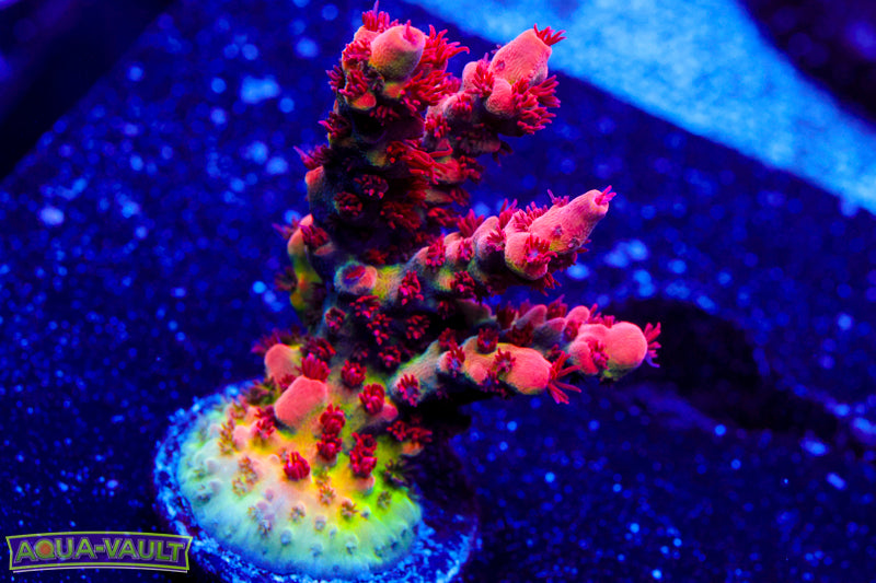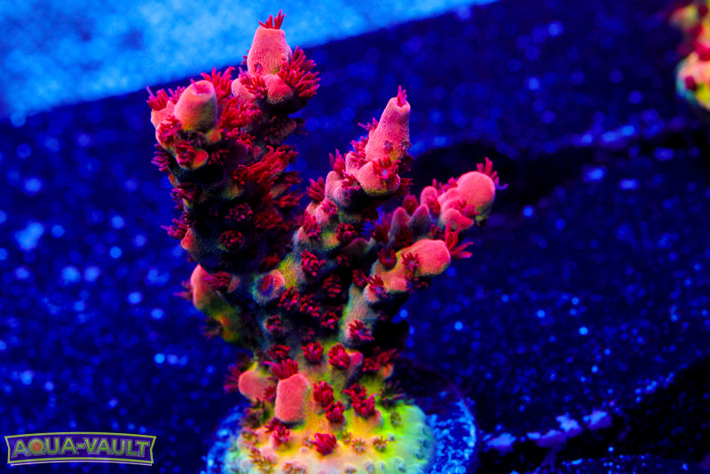 Send two CLEAR photos of the coral WITHIN 1 hour of arrival time (as noted by the first delivery attempt). All of the following are necessary for the claim to be considered: Photos must be submitted to aquavaultdfw@gmail.com - DOA claims sent via Facebook and Instagram are not valid. Photos must be taken from 2 different angles Item must be SEALED in its original packaging and still be on the original frag plug. Photos MUST be clear.All blue photos are not accepted. Send a CLEAR 20 second video. The video must include: Clear visual of the item in question. The box it was packaged in Shipping label on the box