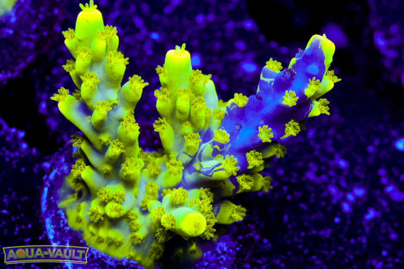 Send two CLEAR photos of the coral WITHIN 1 hour of arrival time (as noted by the first delivery attempt). All of the following are necessary for the claim to be considered: Photos must be submitted to aquavaultdfw@gmail.com - DOA claims sent via Facebook and Instagram are not valid. Photos must be taken from 2 different angles Item must be SEALED in its original packaging and still be on the original frag plug. Photos MUST be clear.All blue photos are not accepted. Send a CLEAR 20 second video. The video must include: Clear visual of the item in question. The box it was packaged in Shipping label on the box
